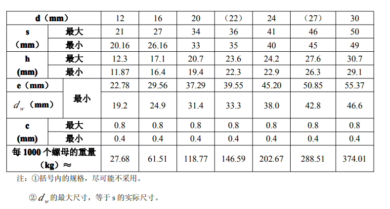 鋼結(jié)構(gòu)用高強(qiáng)度大六角螺母的規(guī)格、尺寸及重量